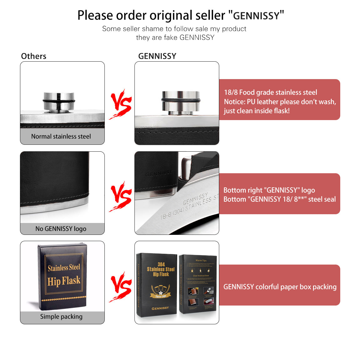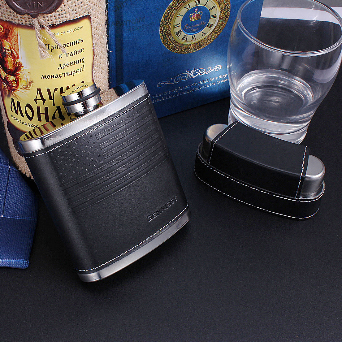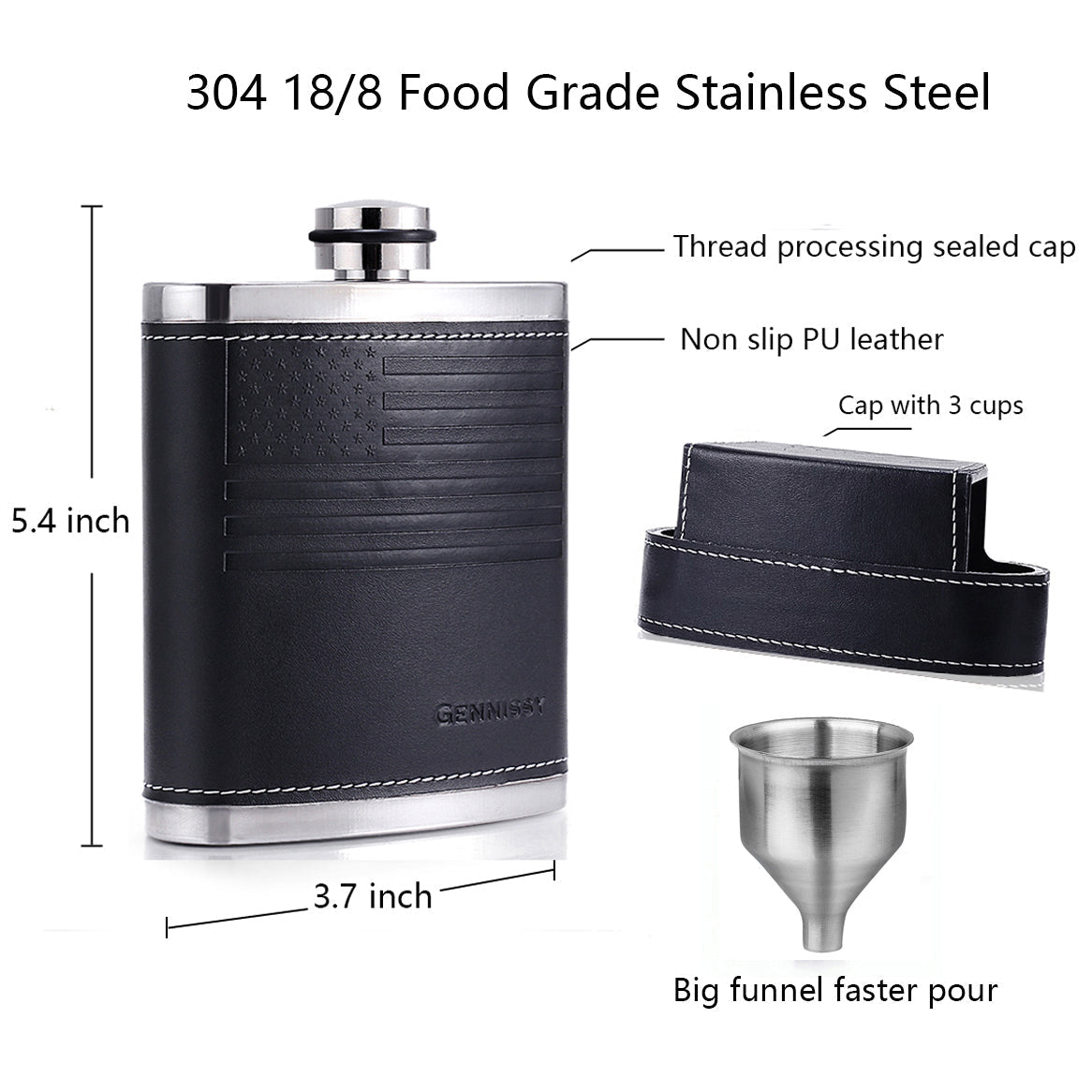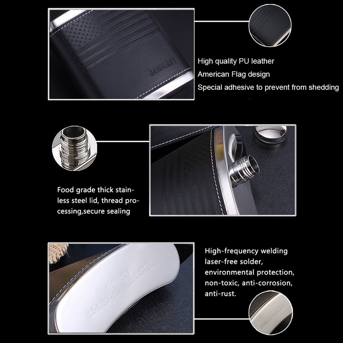 - 【100 % LEAK PROOF】High-frequency welding laser-free solder, thick stainless steel lid thread processing, air-pressured and quality controlled. wrapped in PU leather. The cap seals tightly to make sure no vodka, whiskey, bourbon or other favorite beverage will leak out or be wasted.