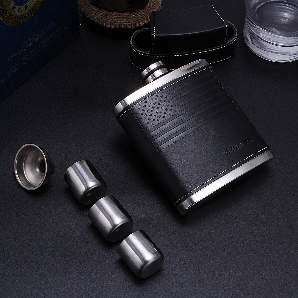 - 1* Black Leather flask