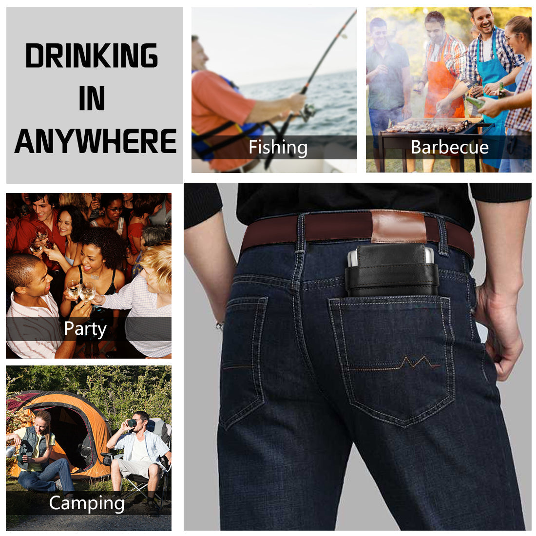 - 【Enjoy your drinking when you are doing a variety of outdoor leisure activities】such as Fishing, Barbecue, Camping and so on. Pocket hip flask makes you can drink anytime, anywhere. Go out to travel with it, meet like-minded companions on the road can share the wine with others, draw closer to each other.