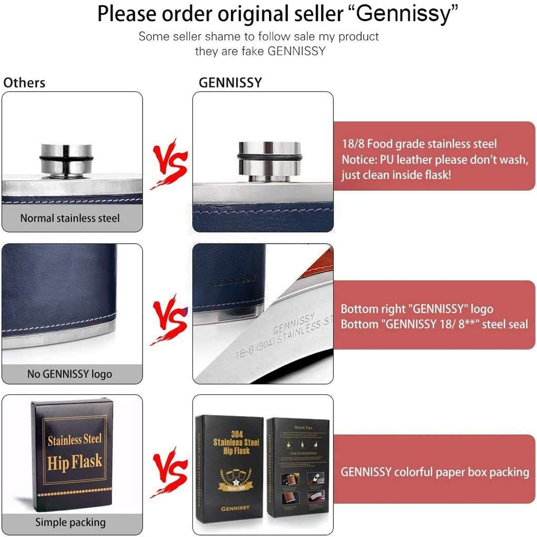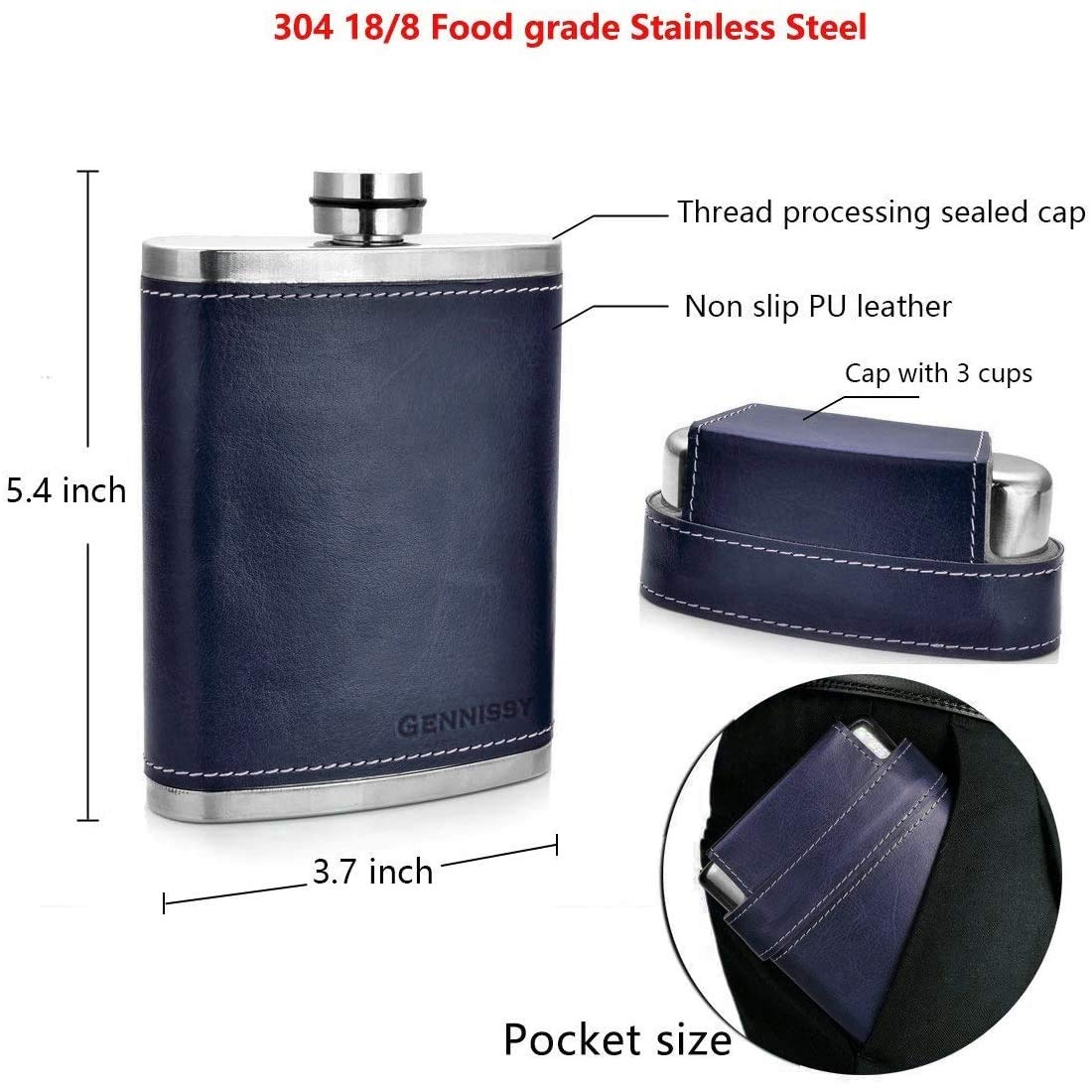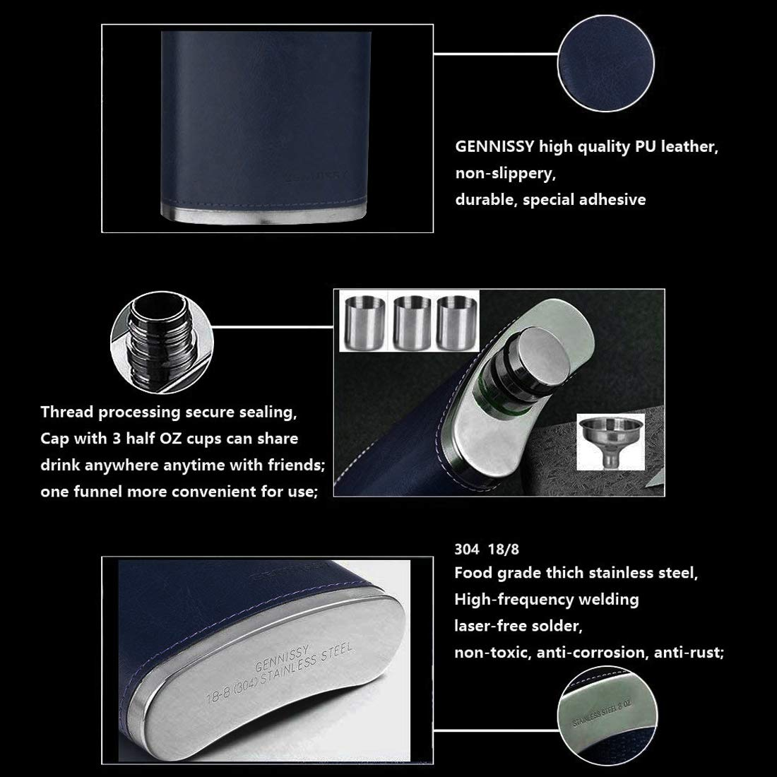 - 【100 % LEAK PROOF】High-frequency welding laser-free solder, thick stainless steel lid thread processing, air-pressured and quality controlled. wrapped in PU leather. The cap seals tightly to make sure no vodka, whiskey, bourbon or other favorite beverage will leak out or be wasted.